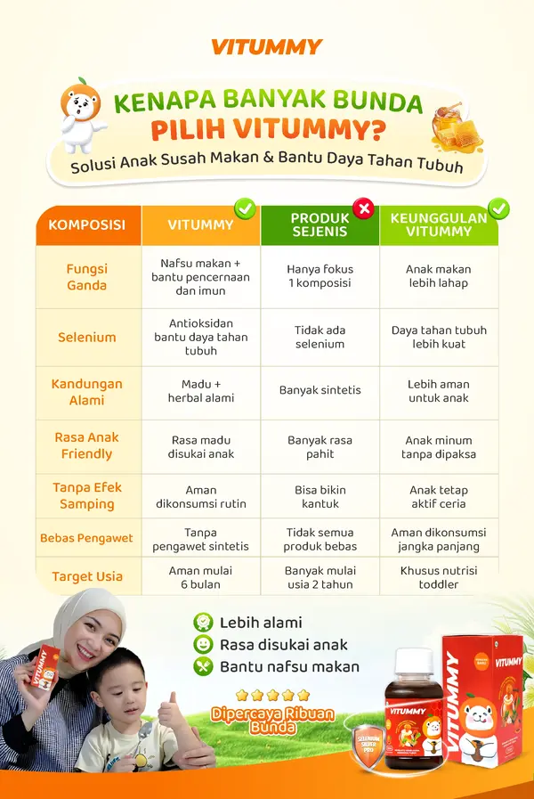 Jangan sampai bunda anggap sepele karena hal tersebut awal dari penyakit Gizi Buruk!! Hanya dengan Rp 166.000/2 botolĀ Madu Vitummy mampu menjadikan solusi masalah susah makan,Ā kurus & CacinganĀ pada anak.